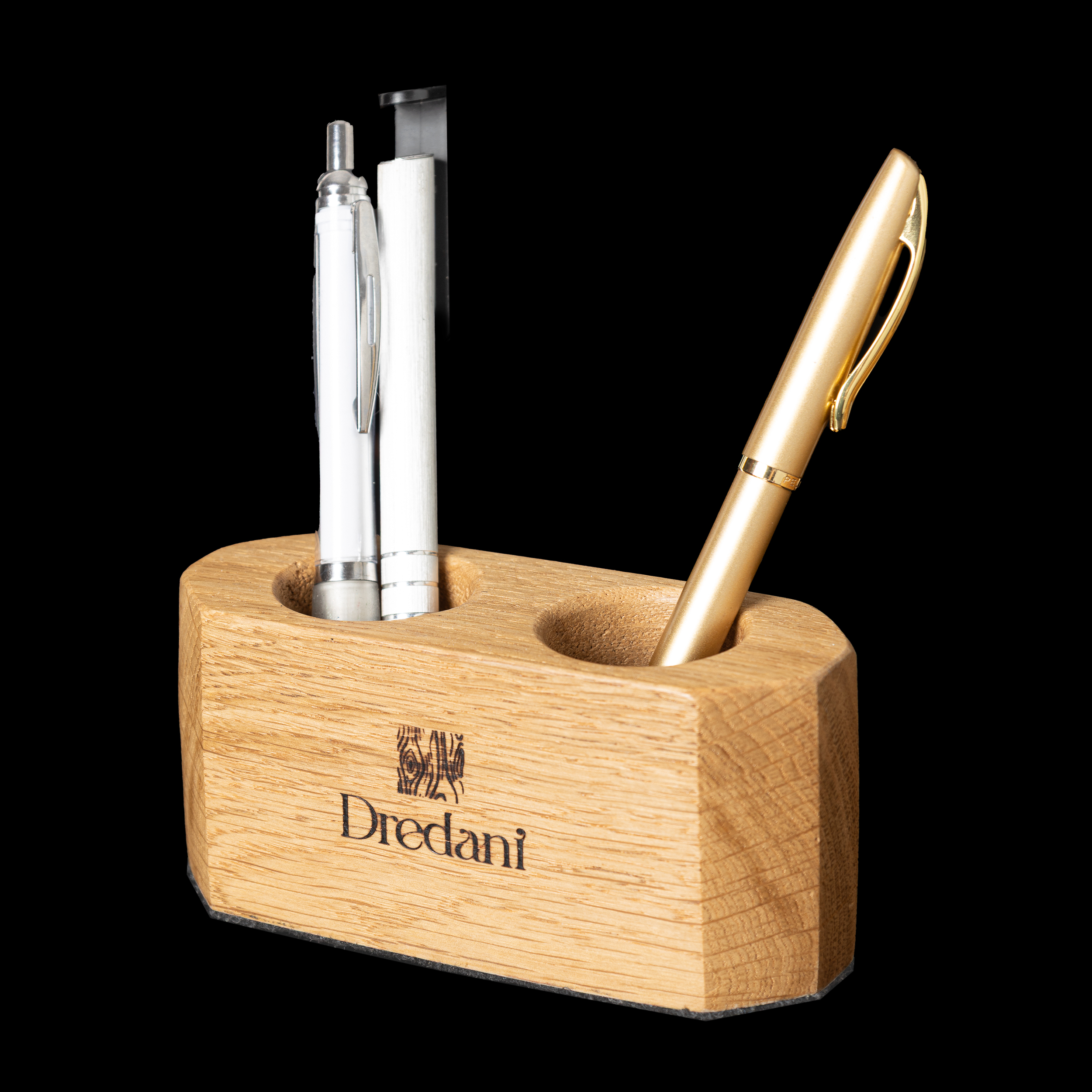 Nie trzeba plastiku, błysku ani dodatków, by coś było nowoczesne. Wystarczy precyzja formy i surowa elegancja dębu. Nasz organizer powstał z litego drewna, zabezpieczony naturalnym olejem, oszlifowany ręcznie i osadzony na filcowym spodzie. Dzięki temu stabilnie stoi – i jeszcze stabilniej wygląda.