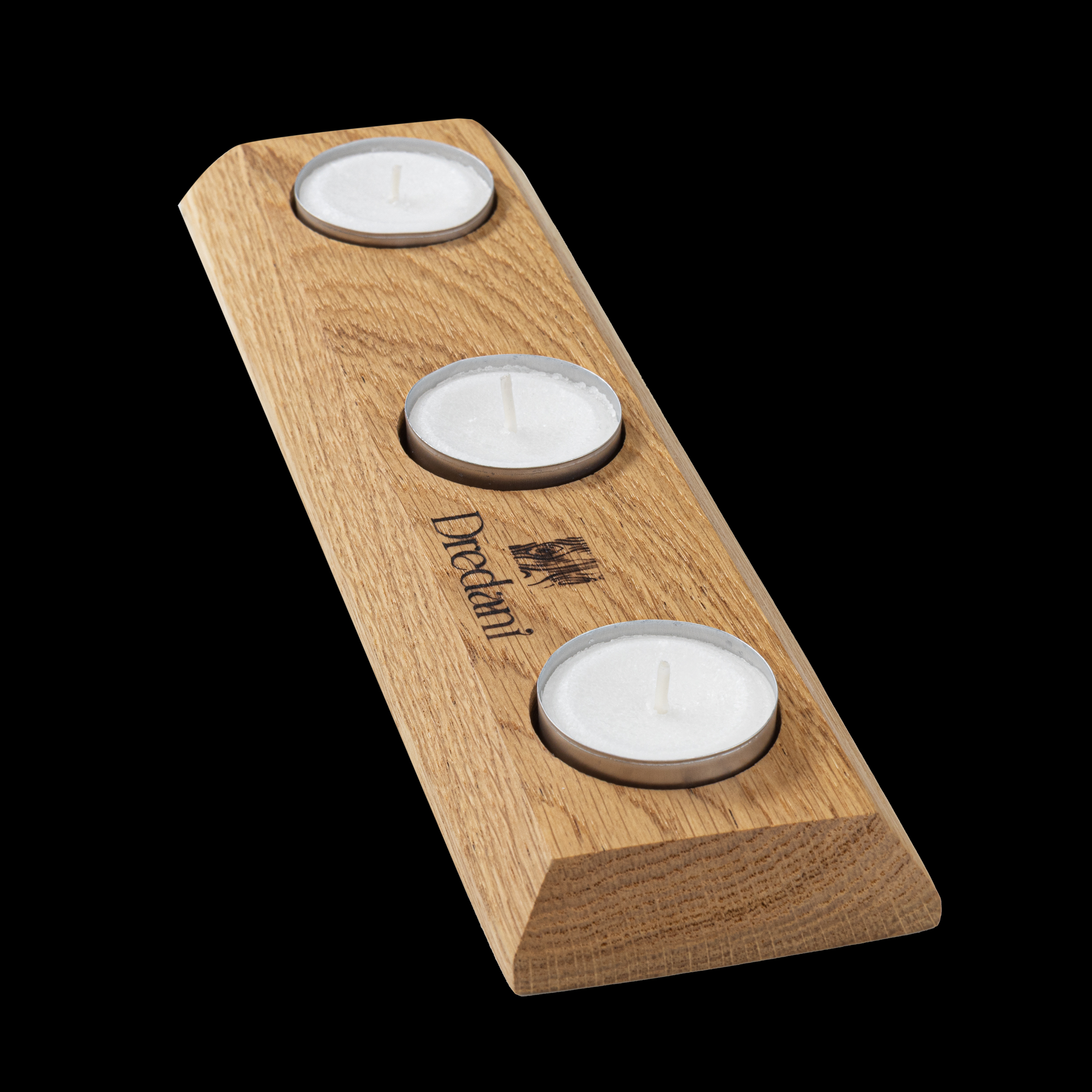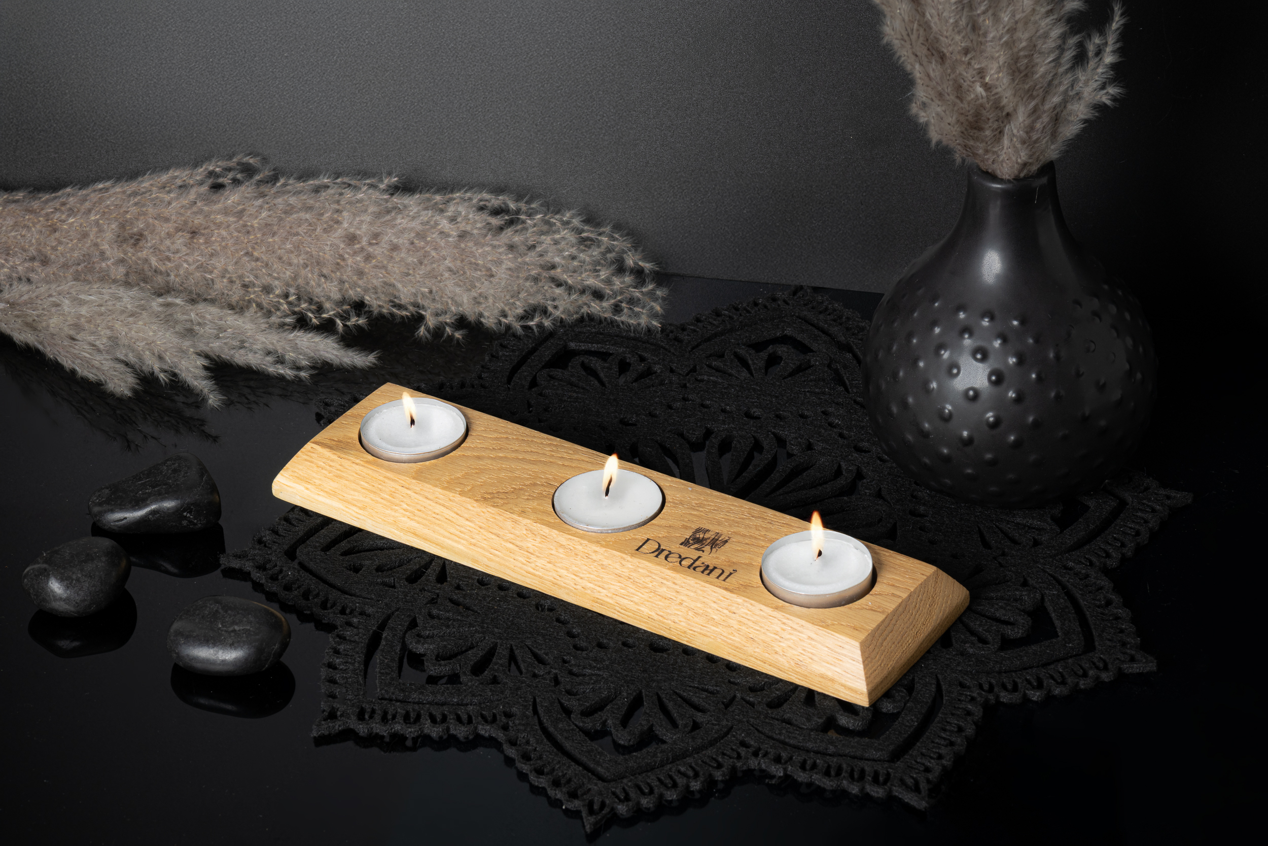 Świecznik Dredani to nie tylko oprawa dla płomieni – to fundament dla nastroju. Wykonany z litego dębu, zaprojektowany w minimalistycznej, geometrycznej formie, staje się tłem, które podkreśla światło zamiast z nim rywalizować.