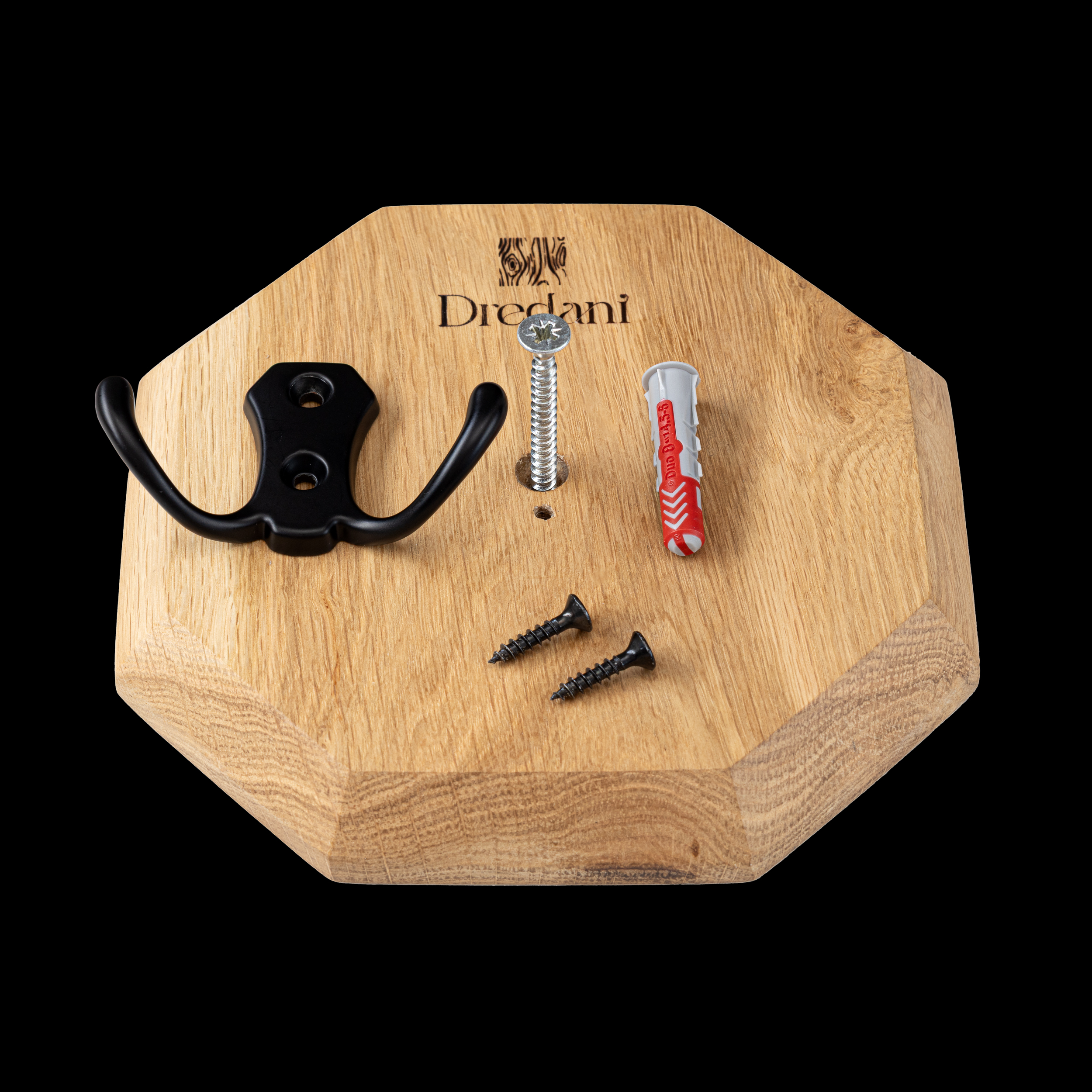 Każdy egzemplarz obrabiamy ręcznie – z dbałością o linię, powierzchnię i jakość. Wkręt do mocowania jest zakryty. Logo Dredani wypalone subtelnie nad hakiem – obecne, ale nie nachalne. Bo estetyka to nie dodatek. To zasada.